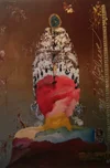 "RAINING UP" 18x24x.75" Acrylics on Revers Painted Glass SGLX