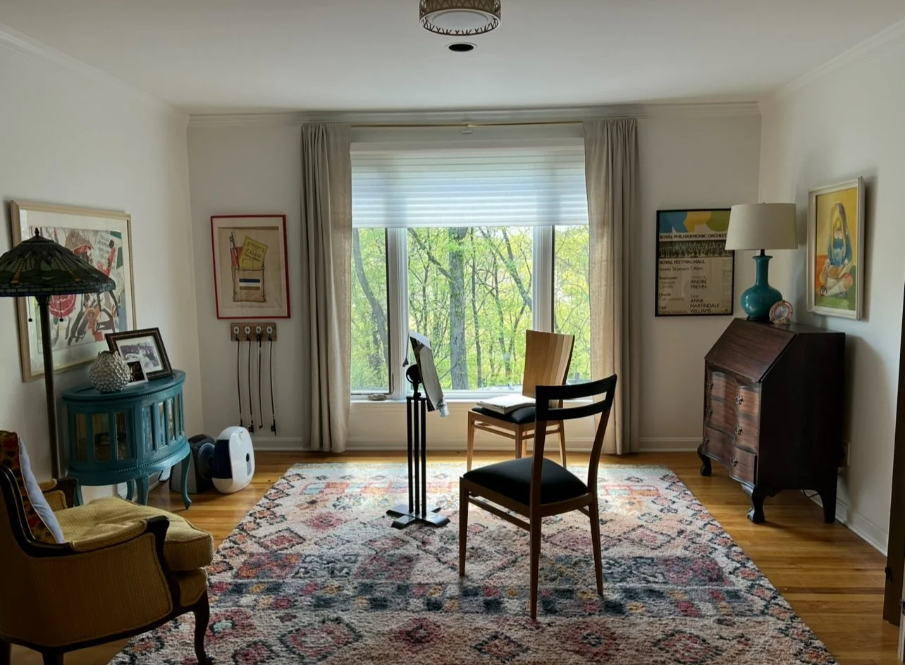 Client Goal: To reimagine the former dining room into a calm, inspiring teaching space that feels removed from the city — a sanctuary for creativity and learning, both for the musician and her students.