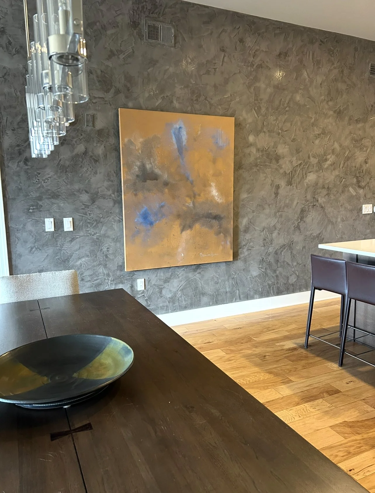 Scope: Wall and ceiling painting in a rich metallic finish, accessory styling, and installation of original encaustic artwork.